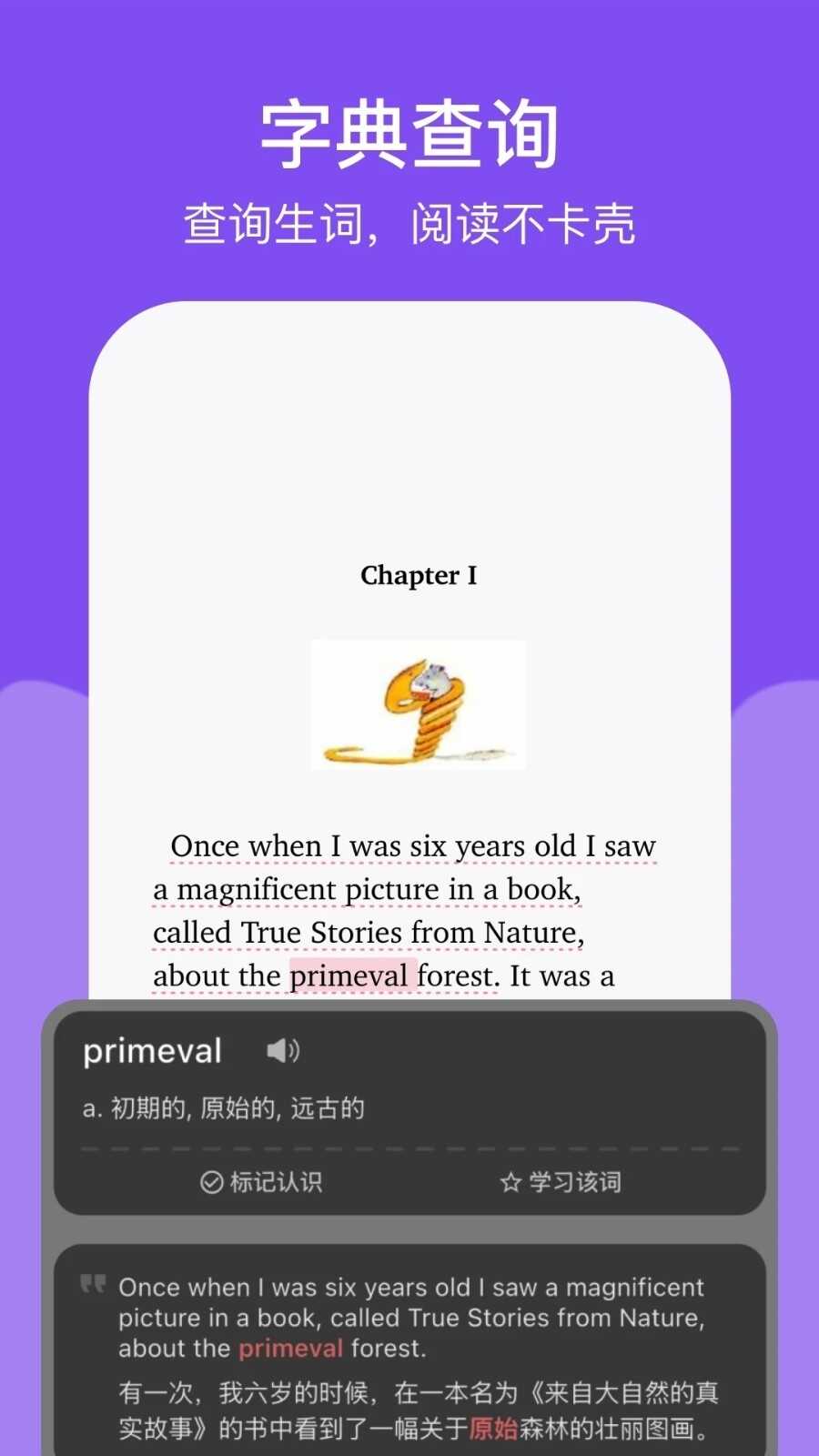 3.在阅读界面可以完成查询和翻译,避免节奏中断,让过程更流畅。