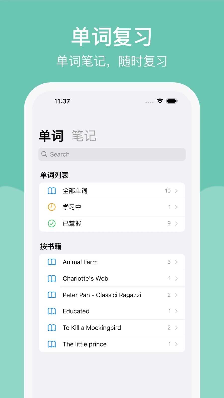 1.在不同书籍中搜索,按书籍分类收集新单词,加强对特定的记忆。