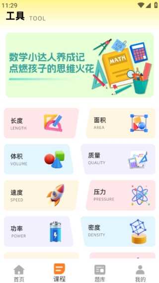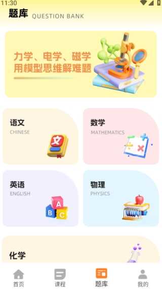 2、进入课程功能模块,各种不同的科目全部都有,且对应的知识点为用户进行总结。