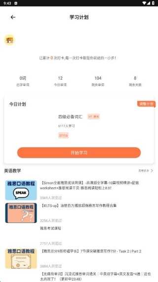 5、完(wan)成设置后点击开始学习,就能(neng)查看到每一日要记忆的单词信息了。