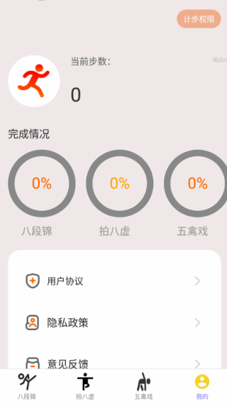4、進入“我的”模块,则能了解当前步数以及锻炼完成情况。
