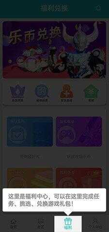 3、这里是福利中心,可以在这里完成任务、挑选、兑换礼包。