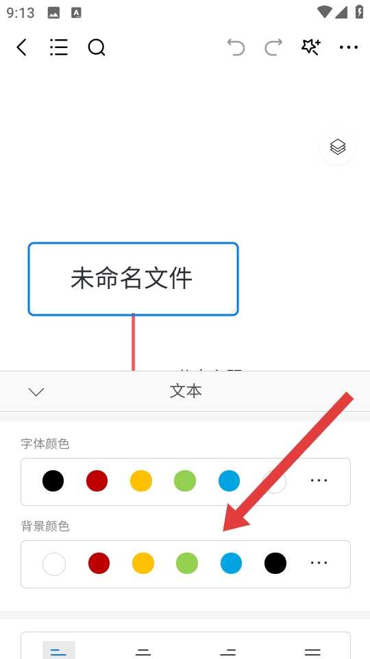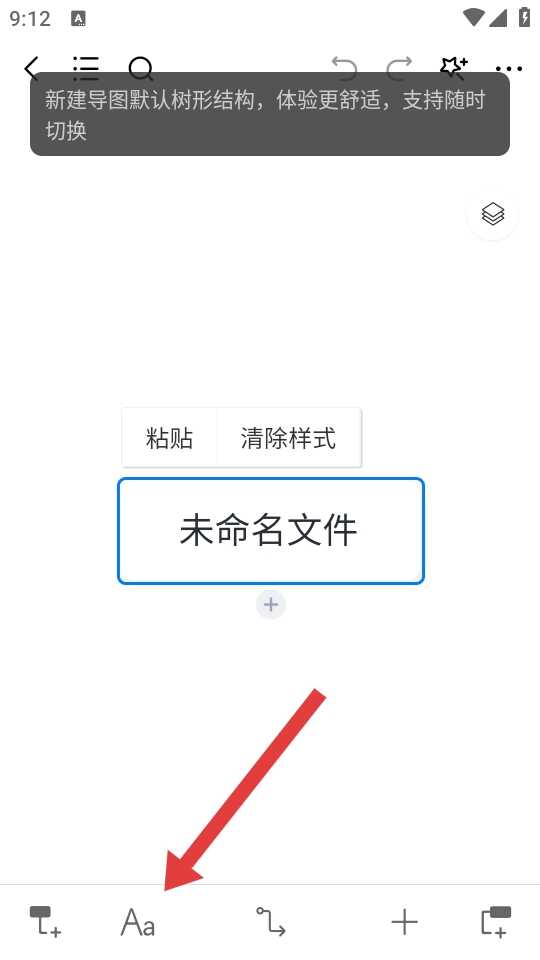 3、在思维导图编辑界面,点击底部的Aa,展开文本和颜色设置面板。