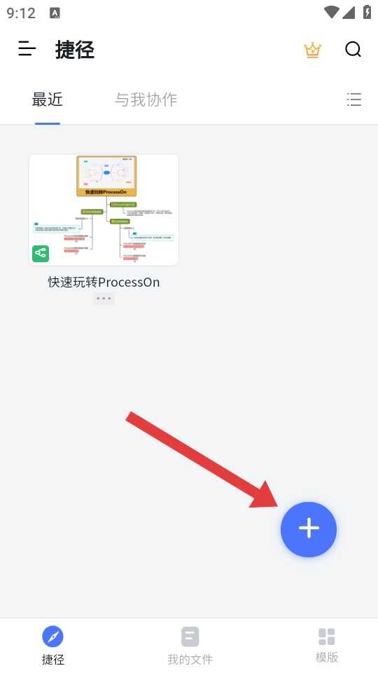 1、打开ProcessOn,点击界面右下角的蓝色+号,展开新建选项菜单。
