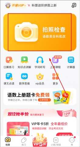 用户将小猿口算app安装在手机之上之后,点击练习本之上的“拍照验算”按钮,软件即可自动识别出练习本之上的算术问题并立即给出答案,准确与否一目了然。