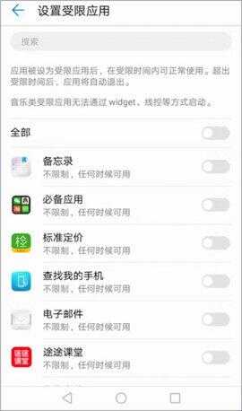 4、然后设置受限的应用,点击进入后选择不希望孩子在学习过程中使用的应用。