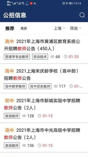 2、筛选功能,可根據不同年级和不同科目筛选岗位;