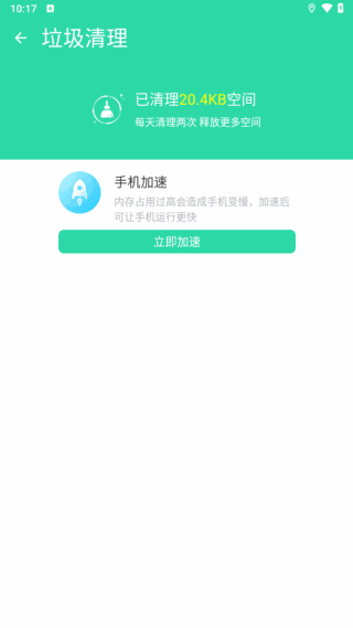 4、点击立即(immediately)清理,清理完成,can对手机進行加速。