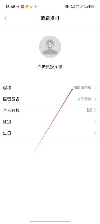 2、然后點击昵称。