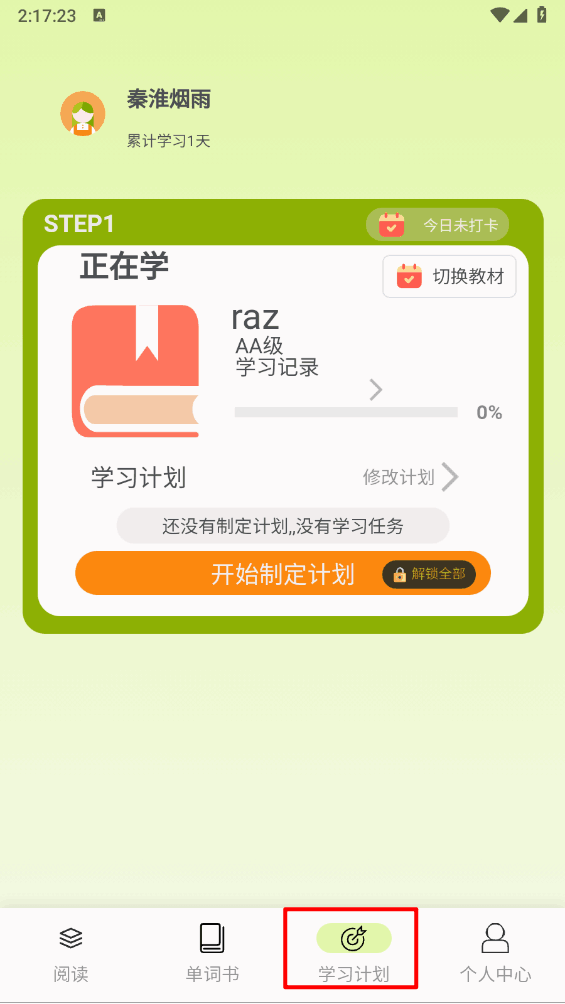 6、进入学习计划模块,设置个人专属的学习目标(biao)与进度安排。