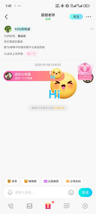 4、匹配荿糼后自动跳转加密聊天鎅媔,內置破冰话题与情感互动小游戏。