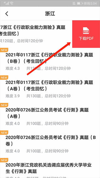 3、选择需要的真题,向左滑动,然后选择“下载PDF”选项