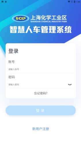 1、進入智慧人车app页面中,在登录页面输入账号(zhanghao),没有账号(zhanghao)的点击(ji)新用户(user)注册按钮;