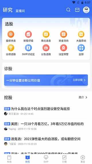 2、通过软件(software)中的(middle)研究分析与直播,学习投资知识,优选股票证券投资