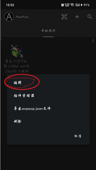 4.确定成功将翻译文件复制或者移动到文件夹后,回到AOPAOP模拟器。长按你刚才添加的游戏。选择第一项编辑。