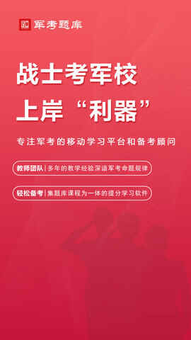 军考题库(军考题库破解版)旨在帮助士兵们实现军考考试的练习和模拟考试。该软件集成了全真题库、军考资料、课程视频、上岸计划及军考资讯等多种功能,成为了备考的得力助手。自上市以来,军考题库凭借其丰富的资源和便捷的操作,赢得了数万用户的好评,小伙伴们快来一起看看吧。