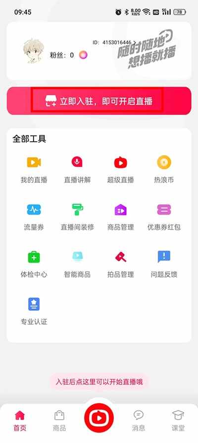 4、确认入驻成功之后就可以(can)直接开启直播了。