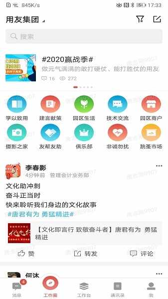 友空间(友空间app上传附件):你的看法?软件具有丰富的功能,为各大中型企业或组织提供内部的工作和沟通,友空间app怎么用实现企业与企业、企业与人协作、交易等社会化商业活动,下面是相关内容介绍。