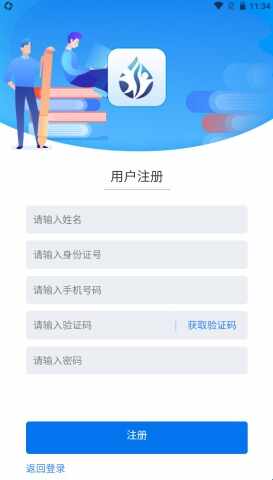 2、输入姓名、身份证号码、手机号获取验证码、自定义密码,点(dian)击(ji)注册即可。