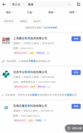 3、点击企业可查看企业详情,点击【一键领(ling)取】可领(ling)取相(xiang)关(guan)联系方式。