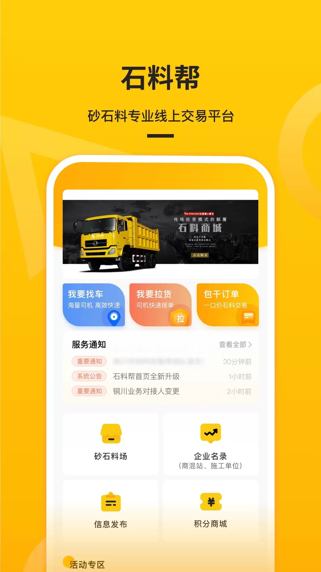 石料帮(石料交易软件)海量的料场和货源都有保障,如果用户不知道该买什么,也可以直接在平台上咨询专家,大量专家进入网上回答问题,确保用户可以放心合适地购买。还可以随时在线寻找汽车和购买商品,石料帮很多优质订单,信息真实可信,支持与业主直接联系沟通,智能报价,还有更多内容大家可以往下看。