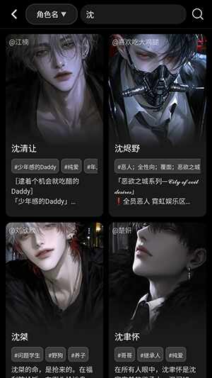 2、可以按照分类筛选感兴趣(interest)的AI角色。