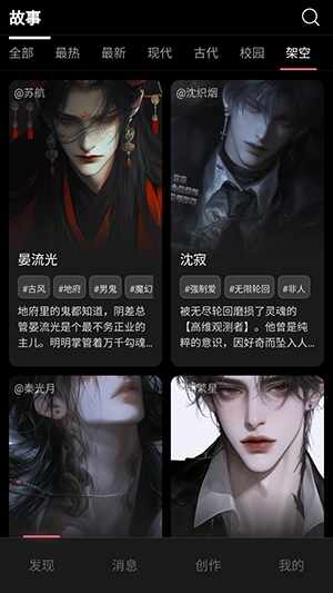 1、首页提供了多种类型的AI角色可以互动聊天。