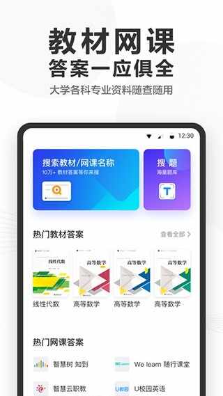 3、帮助大学生解决(jue)他(ta)们不知道如何解决(jue)的问题。它支持拍照或输入问题进行(jinxing)搜索。任何试题都可(ke)以(yi)找到。