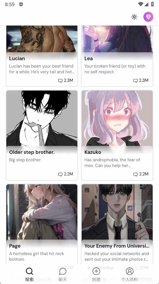 3、無論是想要与朋友分享趣味对话,还是寻求情感陪伴(peiban),切换角色都能推荐新鲜感与乐趣。