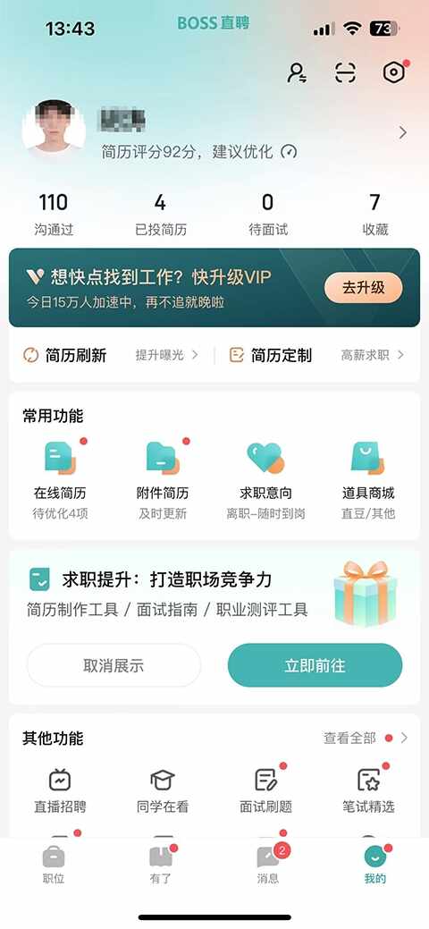 4、开启隐藏简历功能(gongneng)?
