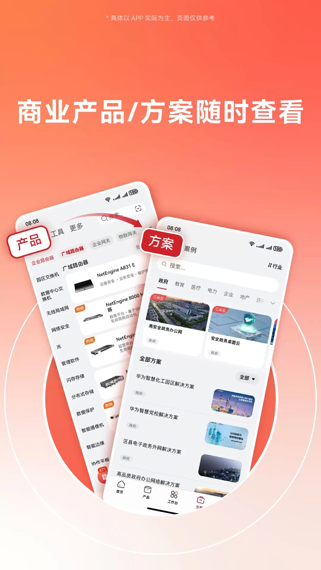 3、专为华为分销商及工程商制作,软件拥有產品,项目,资料等等功能服務;