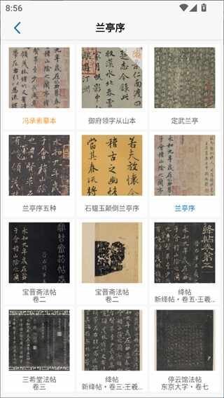 2、筛选1款字帖点击进入,比(bi)如“兰亭序”;
