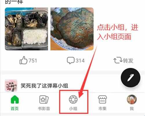 1、首先进入到豆瓣,在首页(ye)的底部菜单选框里点击“小组”进入。