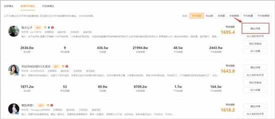 4、如果想进一(yi)步查看播主的详细带货数据,可以点击右侧的“播主详情”,进一(yi)步获取播主的详细数据。
