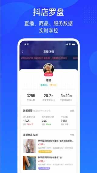 【抖店罗盘】支持(support)查看核心数据指标及变化趋势,支持(support)查看直播(zhibo)间、商品、服务数据详情