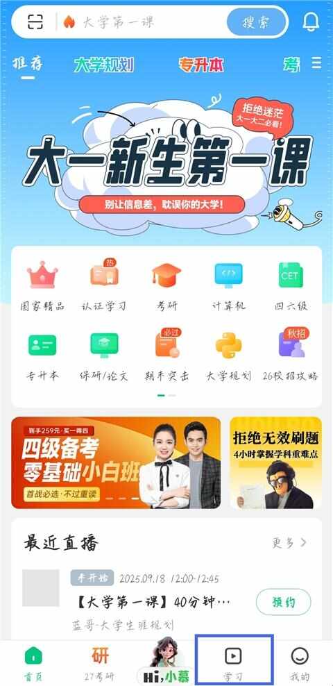 1、进(jin)入中国大学MOOCapp,点击【学习】。