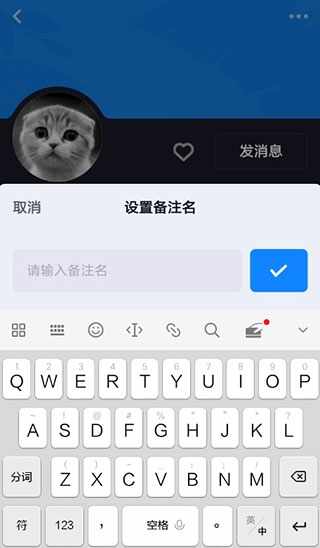 2、打开详情页面之后,从对方头像的下方找到“备注”按钮(如下所示),一键即可重新编(bian)辑备注信息。