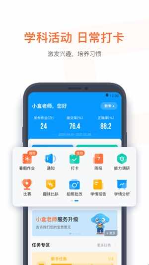 1.日常练测,一键布置,自动批改。系统生成学情报告,帮助老师完成分析