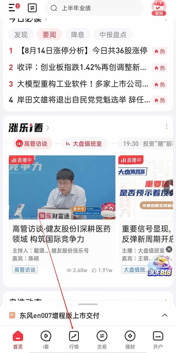 1、下(xia)载(zai)涨乐财富通华泰证券手机版打开登录软件(ruanjian),点击“行情”