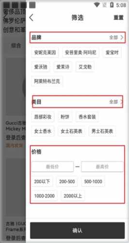 3、用户可以在筛选的时候设置自己喜欢的品牌、类目以及价格;