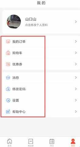 5、点开我的,可以查看我的忊啴、购物车、优惠券,还可以修改密码。