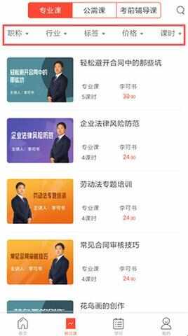 3、点开精品课,有专业课、公需课、考前辅导课等,还可以选择行业、职称等。