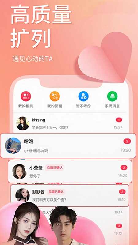 双向确认聊天功能:区别于单向打招呼模式,需双方均点击“心动”确认兴趣后才可开启对话,从源头杜绝单向骚扰,确保每一次沟通都(dou)是(shi)“双向奔赴”,提升聊天质量与回复率。