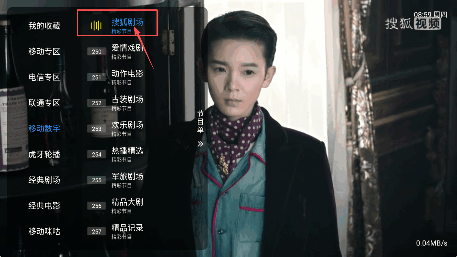 1、点开移动(move)数字,点红框标注的搜狐剧场精彩节目就能看热门剧集。