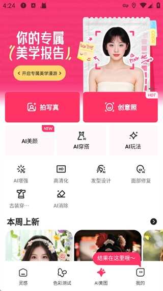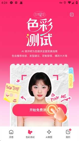 6、此外,妙鸭相机App内还有【色彩测试、AI美图】功能