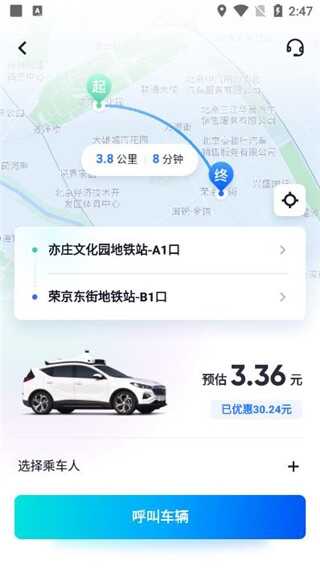 1、用户在萝卜快跑进行一(yi)键(jian)叫车,app会根据人脸进行识别,智能乘车出行(xing)。