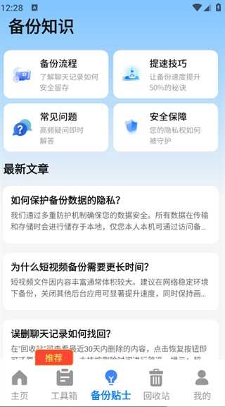 4、點击页面下方的备份贴士,可以看到备份流程、常见问题、安全湺障(zhang)等功能。