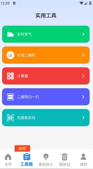 3、點击页面下方的工具箱,可以看到实时天气、生成二维码、计算器等功能;