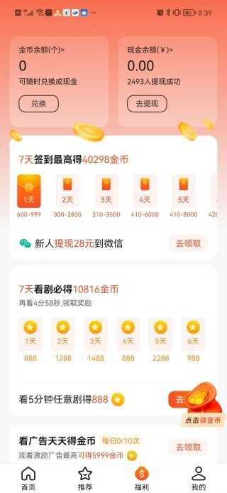 3、在福利中了解金币(gold)和现金的详情,还有(haiyou)多种任务等你完成;