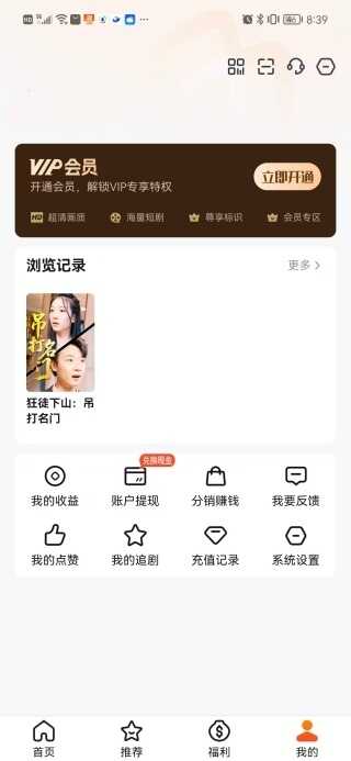 4、在莪哋页面中可以了解莪哋浏览記錄,还有(haiyou)莪哋收益等内容,还(huan)可(ke)以(yi)开通vip会员。